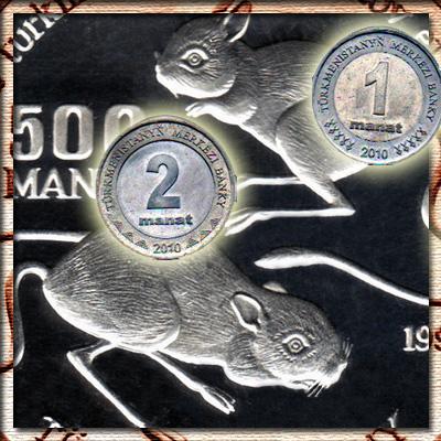 Коллекционеры монет из драгоценных металлов давно обратили внимание на манаты Туркменистана в золоте и серебре. Особенной любовью пользуются монеты Туркмении с изображением животных. Ниже мы показываем представителей двух серий. Слева монета, входящая в серию "Редкие и исчезающие виды животных" (чеканка производилась в 1996 и 1999 годах). Справа серия "Красная книга Туркмении" (2006 год). Следует отметить ограниченный тираж последней (до трёх сотен экземпляров).