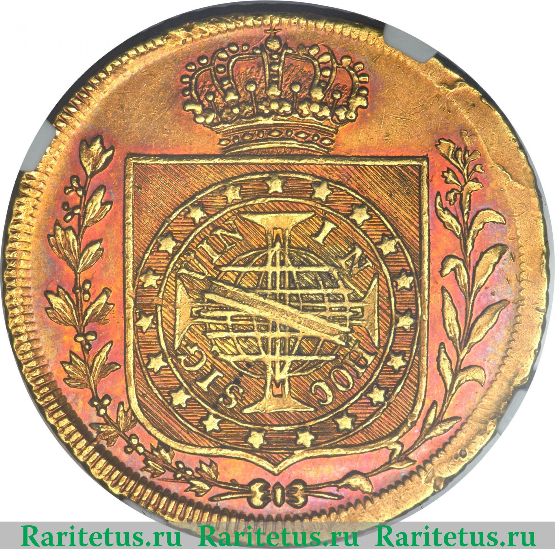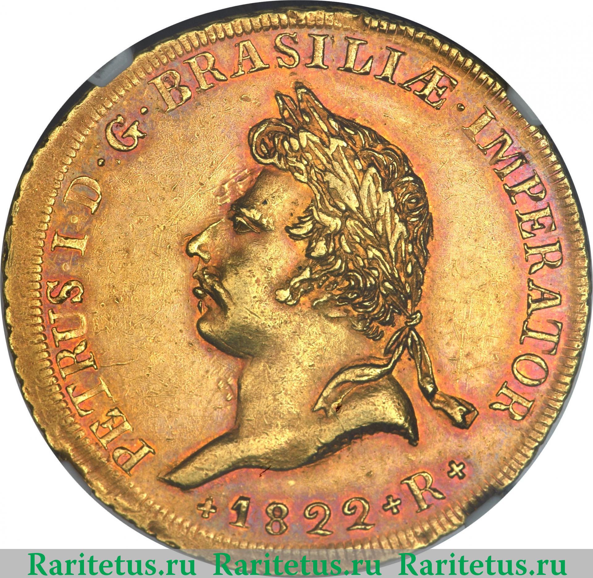 В качестве первой ступеньки пирамиды, уводящей к заоблачным высотам, многие источники указывают на бразильскую монету девятнадцатого столетия, выпущенную в честь коронации Педру Первого, который и положил основание современной Бразилии. Этих монет отчеканили всего шестьдесят четыре штуки. Бразильский император предстаёт нам в виде древнего римлянина, увенчанного славой. По слухам Педру Первый не любил портреты подобного плана, но один из них теперь увековечен кружком золота. Одну из партии этих золотых продали на Чикагском аукционе за сто тридцать восемь тысяч долларов. О чём это нам говорит? О том, как относительны все эти списки "Самые-самые дорогие..." Ведь загляни в наш каталог монет, и почти сразу отыщешь монеты, набравшие на аукционе суммы и позначительнее. К примеру, 25 рублей 1876 года, ушедшие на "Волмаре" за 12 599 621 рублей 11 октября 2016 года. Автор, советовавший не забывать о бразильском золотом, не мог знать о торгах, которые состоятся в будущем.