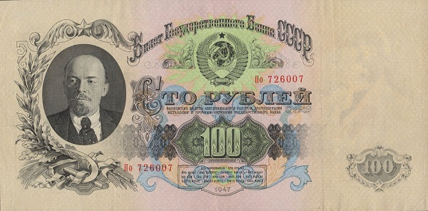 14 декабря 1947 года появилось совместное постановление Совета Министров СССР и ЦК ВКП(б) «О проведении денежной реформы и отмене карточек на продовольственные и промышленные товары», согласно которому предполагалось полностью изъять из обращения деньги старого образца и заменить их новыми купюрами. После войны международное положение СССР коренным образом поменялось. Из изолированной страны, вынужденной бороться за свое существование во враждебном окружении, он превратился в могучую державу, контролировавшую половину Европы, без которой не решался ни один серьезный международный вопрос. Новая роль страны отразилась и на внешнем виде купюр, которые приблизились по своему оформлению к дореволюционным «имперским» образцам. На деньгах появилось новое изображение герба СССР, состоявшего теперь из 16 союзных республик, утвержденное в июне 1946 года. Новые деньги обменивались на старые в соотношении 1:10. При этом монеты обмену не подлежали. Прекратилось одновременное существование двух видов бумажных денег - червонцев и казначейских билетов. Вместо них были выпущены казначейские билеты достоинством 1, 3 и 5 рублей, которые обеспечивались всем достоянием Советского Союза, и билеты Государственного банка СССР достоинством 10, 25, 50 и 100 рублей, обеспеченные золотом и иными драгоценными металлами, находившимися в хранилищах Государственного банка.