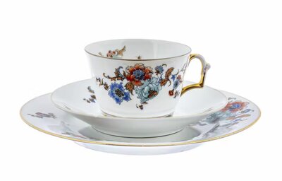 Великолепный дизайн фарфоровых чашек “Thomas Bavaria” вызывает восхищение оригинальностью решений. Чашка поставлена на три ножки-лапки, а форма ручки сделана в форме спирали. Утонченный цветочный орнаментальный декор, позолоченные детали завершают оформление. Такая посуда является настоящим произведением искусства, прекрасным украшением стола.