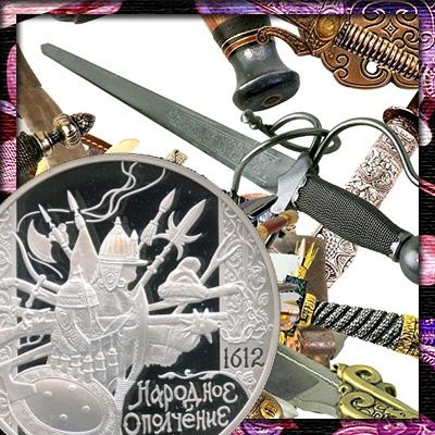 Холодное оружие на коллекционных монетах РФ из драгоценных металлов