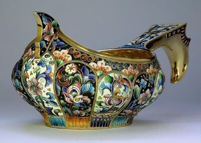 На Руси декорирование эмалью, пришедшее из Византии, называли “финифтью”.Самые ранние русские изделия в этой технике относятся к Х в.. Мастера украшали колты (женские украшения для головного убора), диадемы, бармы, дарохранительницы, оклады, кресты и проч.. Центрами эмальерного ремесла были Киев, Чернигов, Рязань, Новгород и др.