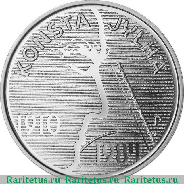Музыканту, чьей стезёй стала народная музыка, посвящены 10 евро из серебра 925-й пробы. Конста Ялхе (Konsta Viljam Jylhä) считается виртуозом финской фолк-музыки. Его феномен в том, что он не только мастерски исполнял народную музыку, но и всячески её популяризировал. Его телевизионная аудитория постоянно росла, что заложило основу для большого числа народных ансамблей и индивидуальных исполнителей. Наиболее известные произведения, созданные Конста Ялхе, - это Konstan Parempi Valssi («Большой вальс Консты») и Vaiennut Viulu («Скрипка без звука»). Монета имеет диаметр 38,6 миллиметра и гладкий гурт. Правда, такой монетой сложно дополнить экспозицию «Портреты музыкантов», так как портрет скрипача-виртуоза выполнен слишком абстрактно.