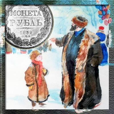 «Бабушка уже стояла над моею кроваткою в своем большом чепце с рюшевыми мармотками и держала в своих белых руках новенькую, чистую серебряную монету, отбитую в самом полном и превосходном калибре.