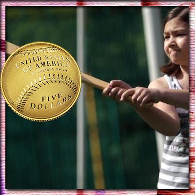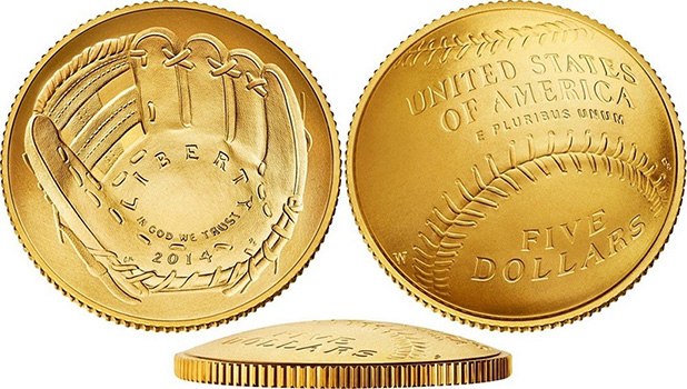 Законопроект авторства конгрессмена из Нью-Йорка Ричарда Ханна о выпуске памятных монет, посвящённых теме Национального зала бейсбольной славы, был одобрен Палатой представителей Конгресса США. Предполагалось, что пятьдесят тысяч золотых пятидолларовых монет, четыреста тысяч серебряных долларов и три четверти миллиона монет достоинством в полдоллара из недрагоценных сплавов начнут чеканить с января 2015 года. Но Монетный двор США сумел провести подготовительные процессы быстрее и выпустил набор из трёх памятных монет уже в 2014 году. Монеты отмечают 75-летие Национального Зала Славы Бейсбола в Куперстауне (Нью-Йорк). Необычность их в изогнутой форме, основанной на дизайнерской идее Кэсси Макфарланд и воплощённой известным гравёром-медалистом Доном Нельсоном Эверхартом. Выгнутый куполообразный реверс напоминает поверхность бейсбольного меча. Вогнутый аверс воссоздаёт кривизну бейсбольной перчатки. Это первые монеты США выпукло-вогнутой формы, и они вызвали большой ажиотаж у местных коллекционеров.