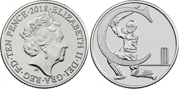 Куда интереснее смотрится представитель «алфавитной» серии. Королевский монетный двор выпустил своеобразную азбуку - 26 коллекционных десятипенсовиков, где в компании букв латинского алфавита показаны важные моменты жизни и символы граждан Соединённого королевства. Буква «С» этой серии отдана крикету, как одному из самых любимых видов спорта. Здесь игра в крикет символизирует то, как проводят свободное время жители Великобритании.