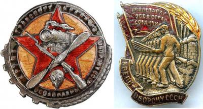 В стране действовало несколько оборонных организаций. В добровольных обществах ОДВФ (Общество друзей воздушного флота) и ДОБРОХИМ (Добровольное общество друзей химической обороны) велась агитационно-патриотическая и военно-спортивная работа с населением. В этих оборонных обществах самостоятельно изготавливались разнообразные нагрудные значки, предназначенные для вручения своим членам, а также для розничной продажи.