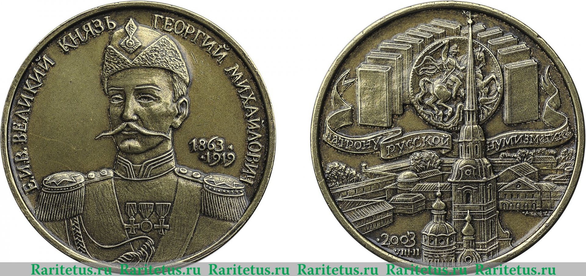 | Описание разновидности | «Великий Князь Георгий Михайлович – Августейший нумизмат»" 2019 года, "В память 140-летия со дня рождения Великого Князя Георгия Михайловича. 1863-2003 гг." |