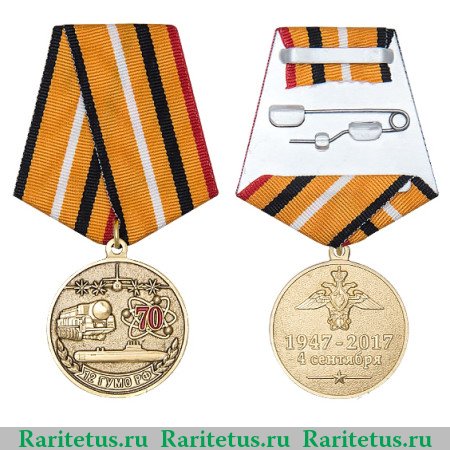 Цена знака Медаль "70 лет 12 ГУМО России" 2017 года, Российская Федерация на сегодня, 14 октября 2025 года