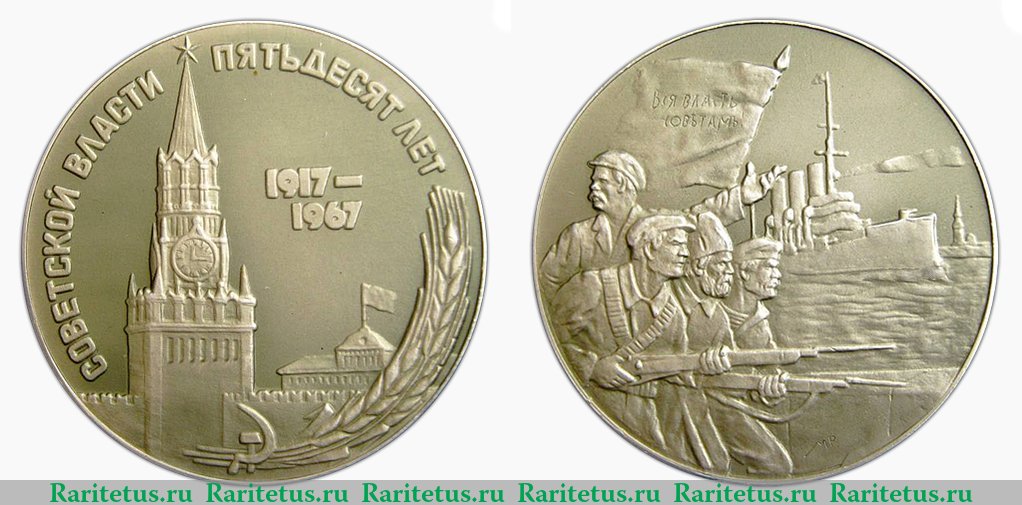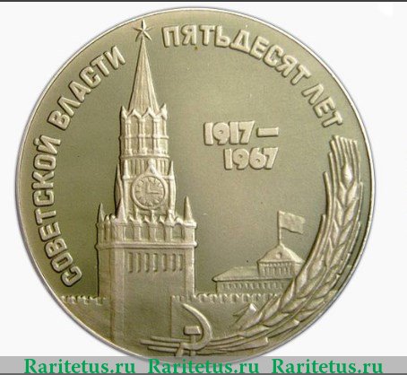 Цена знака Настольная медаль «50 лет Советской власти» 1967 года, СССР на сегодня, 12 февраля 2026 года