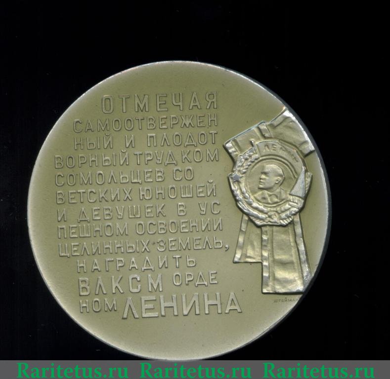 'Настольная медаль «В память награждения ВЛКСМ орденом Ленина за успешное освоение целинных земель»'