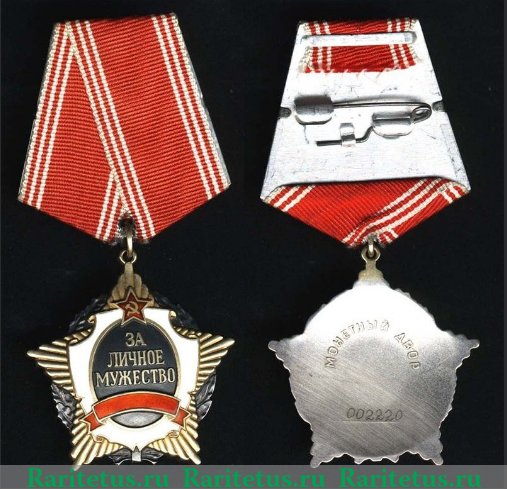 Цена знака Орден «За личное мужество» 1988-1994 годов, СССР, Российская Федерация на сегодня, 5 ноября 2025 года