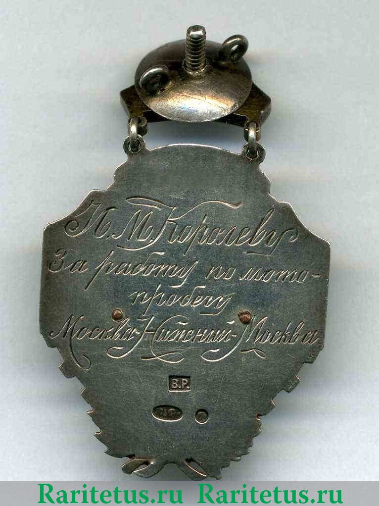 'Знак «Призовой жетон «За работу по мото-пробегу «Москва-Нижний-Москва». Автодор»'