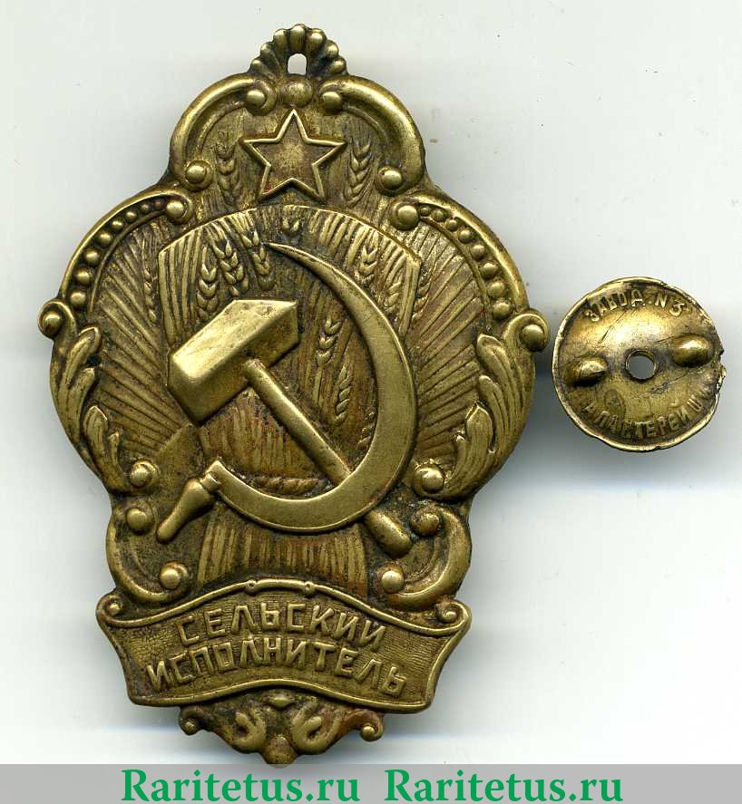 Цена знака Должностной нагрудный знак сельского исполнителя 1920 года, СССР на сегодня, 1 ноября 2025 года