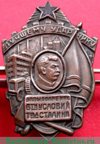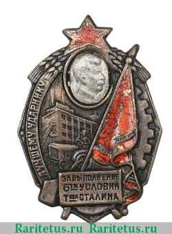 'Знак «Лучшему ударнику. За выполнение 6-ти условий товарища Сталина»'