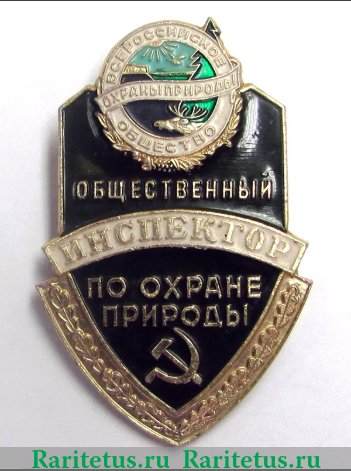 Цена знака Знак «Общественный инспектор по охране природы. Всероссийское общество охраны природы», СССР на сегодня, 18 октября 2025 года