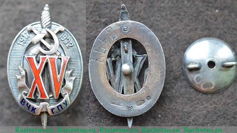 'Знак "Почетный работник ВЧК-ГПУ-НКВД". Тип 2. На реверсе клеймо "НКПС"'