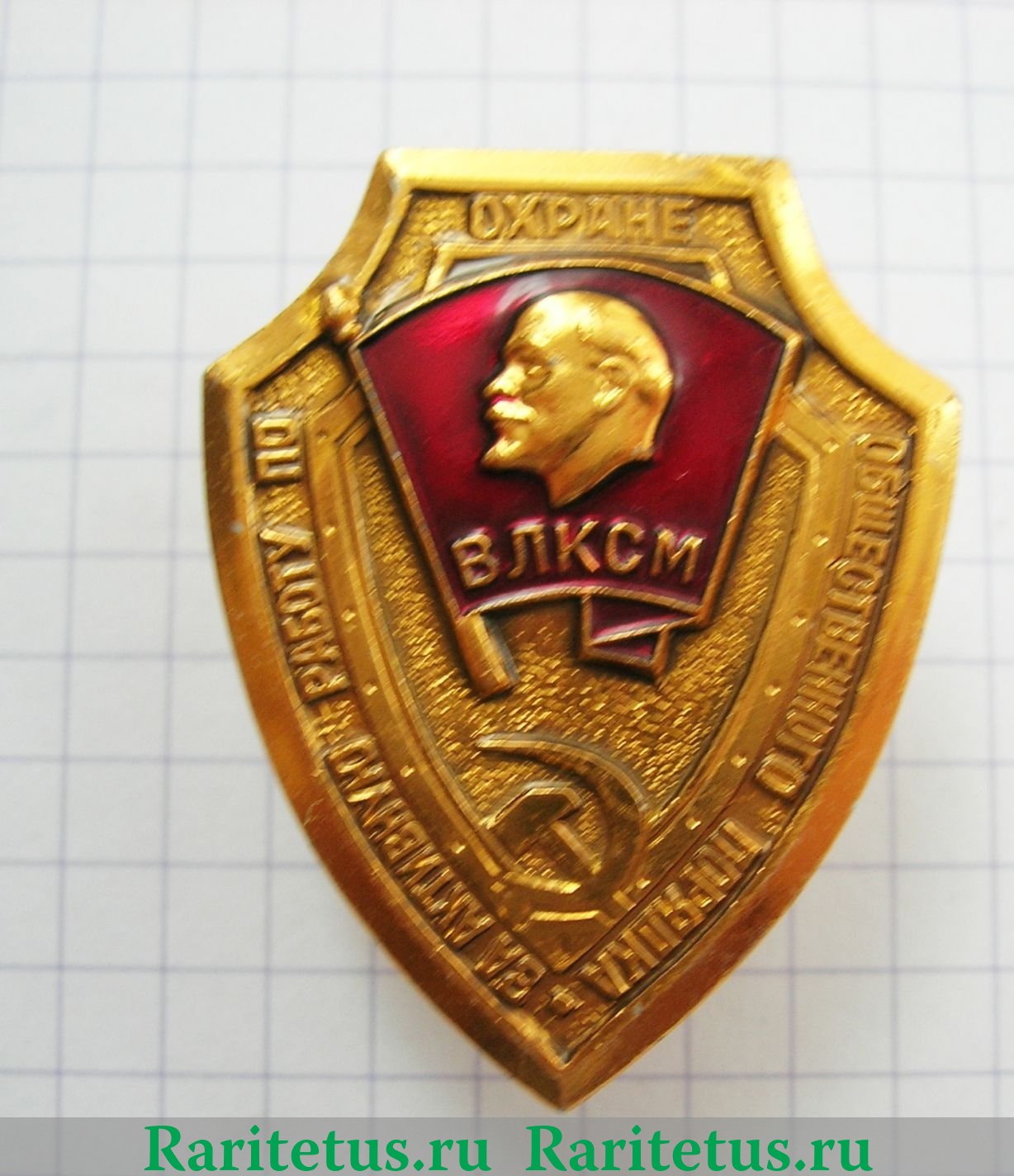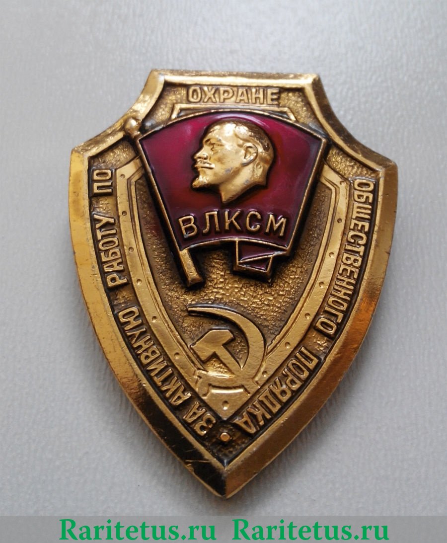 Цена знака Знак «За активную работу по охране общественного порядка ВЛКСМ» 1980 года, СССР на сегодня, 7 декабря 2025 года