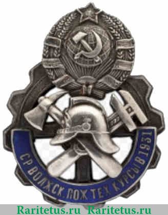 Знак для окончивших Средне-Волжские краевые пожарно-технические курсы в Самаре в 1931 г. 15 000 145 000